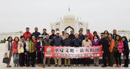 ▲台灣高校教師寧夏絲綢之路參訪團於中華回鄉文化園合影。