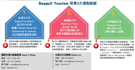 精通杜拜旅遊市場的Seagull Tourism國際市場銷售總經理 Jenny C Wong是正港台灣人,回憶起準備進入杜拜旅遊的前置,Jenny表示,為了要給予客人最佳的旅遊體驗,她每天到杜拜國際機場、飯店大廳,觀察旅遊中的靈魂人物─導遊。