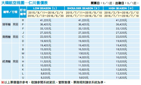 自開票日9/1起,從台灣出發之燃油附加費將調整如下: