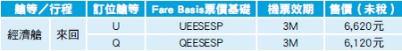 6.UEESESP/ QEESESP機票Refund罰金3,000元、Reissue罰金1,800元。