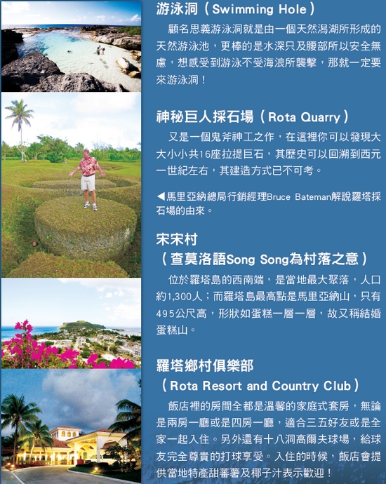 馬里亞納觀光局代表蔡璧如指出,馬里亞納不止塞班島、天寧島,還有秘密花園羅塔島,從塞班島出發就可輕鬆抵達,是追求秘境旅遊的旅客不可錯過的絕美境地。