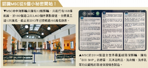 搭乘MSC的旅客以義大利、西班牙、法國與德國最為大宗,亞洲旅 客佔MSC全年度旅客總量雖僅近1%,但每年成長的態勢強勁。MSC重 視亞洲旅客的需求,因此船上中文化的程度高,配備有多名中文服務 人員於岸上觀光辦公室、購物商場等,在菜單、每日節目表、安全演 習廣播等均以中文呈現,讓來自大中華區的旅客輕鬆徜徉海上假期。