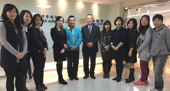 ▲(左起)泰元旅行社團體部張雅婷、山富旅遊協理黃梅湞、百威旅遊港澳線線控副理彭淑青、華航集團華信航空台中公司營業科業務主任洪千雯、大安旅遊總經理陳雄昭、華航集團華信航空台中分公司營業科經理王景弘、大眾旅行社副總經理劉倢甄、大星旅行社總經理許鳳釵、華友旅行社副總經理楊春莉、玖龍旅行社經理王玲紋、良友旅行社業務代表林家和。
