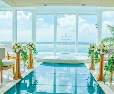 去年11月全新開放的婚禮教堂,風格典雅浪漫,杜夢灣海景一覽無遺,室內約可容納約35人,適合小團的海外婚禮。