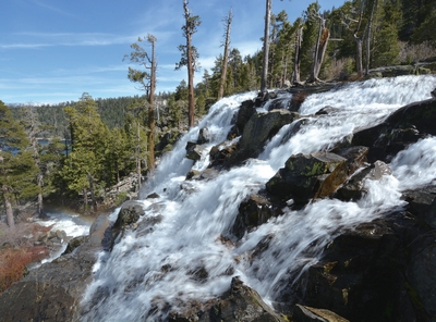 冰川運動形成的花崗岩山坡、積雪融水形成的瀑布、野花點綴著的草地,是來老鷹瀑布步道健行的最佳寫照,15分鐘的路程,便能將太浩湖盡收眼底。