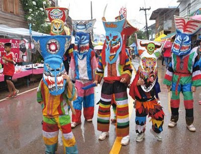 每年6、7月間在雷府丹塞區舉行的「皮塔 空節」,又稱「鬼臉節」,是當地最知名 的傳統慶典活動。只見居民穿著獨特服裝、 戴上五顏六色的面具和頭飾,生動熱鬧的遊 行隊伍伴隨著歡笑聲一路前進,對外地遊客 說是相當難忘的體驗。(一年一度的皮塔空 節,每年舉辦的日期並不固定,可上泰國觀 光局網站www.tattpe.org.tw查詢。)