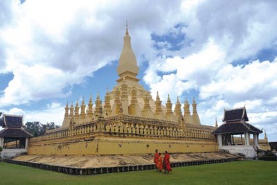 永珍是寮國的首都和最大城市,這座位於湄公河畔的城市充滿傳奇色彩與歷史 風華,因寮國曾被法國殖民統治過,許 多建築流露出濃濃的法式風情,也有一 些被改建成餐廳、精品旅館。凱旋門是 當地代表性建築,為紀念寮國獨立而興 建的勝利紀念碑,洋溢法國氣息,而 浮雕裝飾卻有寮國味道。寮國與泰國 同為佛教國度,巨大的鍍金佛塔─帕 塔鑾寺(Phra That Luang Temple)、 約200年悠久歷史的西薩格寺(Si Saket Temple)……,都是當地知名佛寺。
