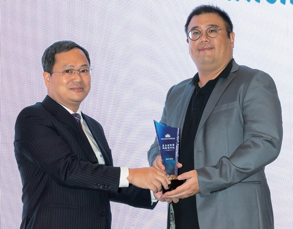 ▲作為越南航空的堅實合作夥伴,鴻毅旅行社日前獲頒產品創新獎的殊榮,由執行董事蔡承廷(右)受獎。