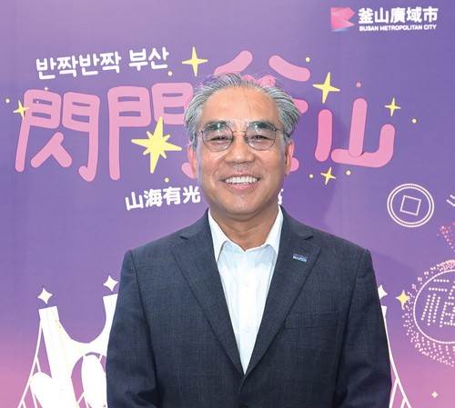 ▲(左起)釜山觀光公社社長李定實、全球市場行銷組組長Youngho Son。