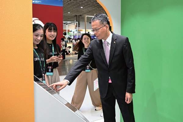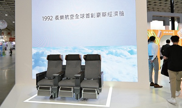 作為ITF最吸睛的攤位之一,長榮航 空今年以「這個世界就是我的遊樂 園」為主軸,不僅設有達拉斯、釜山AI 生成拍照區,並展示第4代豪華經濟艙座 椅,以及與Maison Kitsuné聯名的機上 服務備品,將最完美的空中體驗展示給 消費者。