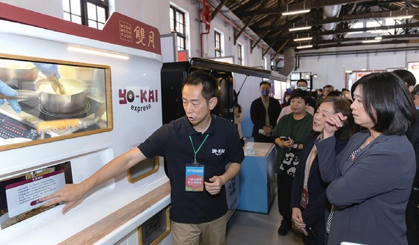 在自動化服務領域,博覽會展現了「全天候餐飲」的商業新模式。觀光署攜手矽谷新創優豈公司(Yo-Kai Express),展示如何利用自動化機台填補離峰時段的人力空白。