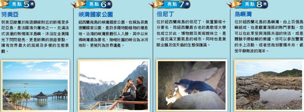 位處南半球的紐澳,特殊的地理環境與氣候,孕育豐饒的物產及自然景觀,更是冬天亞洲客群旅遊的熱門景點。隨著紐澳整體經濟發展及國際地位的提升,遊輪旅遊市場日趨成熟,公主遊輪提供豐富多元的航線,並安排彈性天數的旅遊產品,供同業針對不同客群需求,包裝面面俱到的特色產品。加上遊輪能走訪陸地行程難以抵達的特殊景點,還可省去轉機的繁瑣手續,及耗費時程的拉車時間與購物行程,提升旅客旅遊品質。