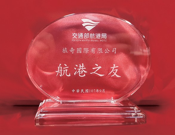 ▲旅奇國際榮獲航港局肯定,頒贈港務之友獎盃。