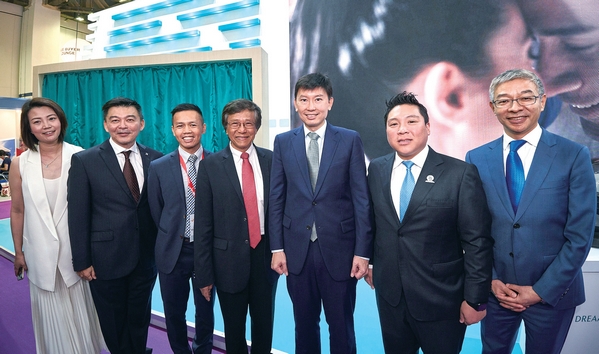 雲頂郵輪集團10/16於新加坡亞洲國際旅遊交易會中,在眾多貴賓和業者的見證下,正式向全球旅客揭曉旗下星夢郵輪「環球夢號」的船身彩繪—《海闊天空‧夢無際》,包括新加坡貿工部兼教育部高級政務部長徐芳達、雲頂香港主席兼行政總裁丹斯里林國泰、雲頂香港副行政總裁兼執行董事林拱輝、雲頂郵輪集團總裁朱福明及星夢郵輪總裁兼雲頂郵輪集團國際銷售部主管吳明發共同為星夢郵輪「環球夢號」船身彩繪設計揭幕。