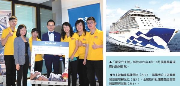 ▲演講者公主遊輪業務部副理鄭光仁,生動務副理何淑敏(左5)。幽默的分享星空公主號的奢華設施,與此次行程的經典景點。
