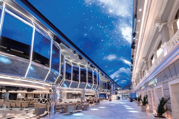 ▲鴻圖號擁有長達98米的LED海上天幕,隨著晝夜與目的地轉換主題,為旅客締造不同的視覺饗宴。