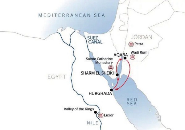 近海輪亞得里亞號屬於特級船,2017年初翻新的4層甲板船,99間客艙僅可容納197位客人,全年專營8天7夜行程,夏季航行克羅埃西亞、黑山─亞得里亞海的寶藏(4月~10月);冬季航行紅海、塞普勒斯和聖地(11月~3月)。其中將在2024年1月啟航的「紅海寶藏埃及、約旦8天」將遊覽埃及和約旦之間的紅海奇觀,探索西奈半島沿線的紅色赭石景觀、納馬灣壯觀的海洋生物、埃及帝王谷和卡納克神廟群、以瓦迪拉姆沙漠為家的貝都因人。其中帝王谷和卡納克神廟建築群、聖凱瑟琳修道院、瓦迪拉姆沙漠、佩特拉岩石群都被列為聯合國教科文組織非物質文化遺產,相當值得一看。