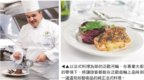 「踏上泛歐河輪,您將進入一個極致的旅遊環境,享受無與倫比的舒適」,李英明強調,河輪雖常被稱作遊輪的縮影,但其實整體服務來看河輪更強調歐式風情的尊崇感體現。以餐食為例,總部位於法國的泛歐河輪以提供純正的法式料理著稱,相比於歐式料理的重口味,法式料理更著重少油少鹽的健康設定,加上用心規劃的佐餐酒,以及窗外的河岸優美風光,讓每一次用餐都是種饗宴。