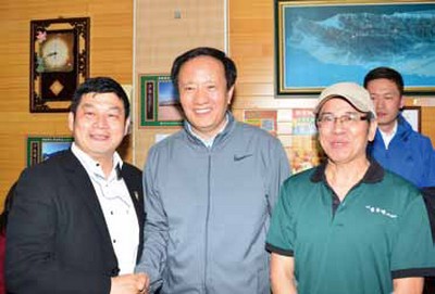 ▲(左起)寧夏回族自治區黨委書記李建華、副書記崔波、黨委常委李銳。