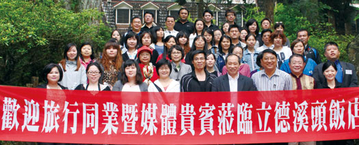▲立德飯店總經理林樹波(右4)、立德溪頭飯店館長吳啟文(右5)、立德飯店專案開發部協理李桂琪(右 1)與立德溪頭飯店Agent Tour旅行同業貴賓合影。