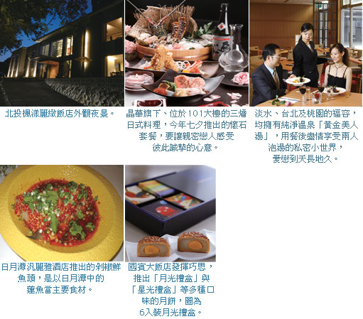 迎接浪漫七夕到來,北投楓漾麗緻飯店推出「永摯不渝情人夜專案」,內容含雅緻客房住宿乙晚、情人節套餐及舒活晨光早餐各2客、客房內花崗石湯池獨享私人泡湯、住宿期間大眾白磺美湯無限次使用、房內免費Mini Bar飲料、獨享Lounge迎賓飲料、住宿期間館內SPA八五折優惠、迎賓茶點、代客泊車及北投捷運站免費接送服務等,每房並加贈法國紅酒及甜蜜巧克力。此外,並有情人節套餐,美食佳餚配上濃情密意,甜嘴也甜心。