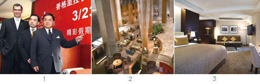 1. 徐旭東親自推廣新飯店,連海報標語「精彩假期 不出國門 便利愜意」都是他的點子。(右起)遠東集團董事長徐旭東、香格里拉台南遠東國際大飯店總經理梁發宗、香格里拉酒店集團營運副總裁黎任文(Lothar W Nessmann)。
