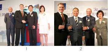 2.台灣觀光協會會長周慶雄(左2)與秘書長葉碧華(右1)預祝台北諾富特華航桃園機場飯店11月開業順利。