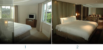 1. 充分運用中山北路綠蔭優勢,整修後的老爺大酒店打造出邊間房臥室的全新面貌。