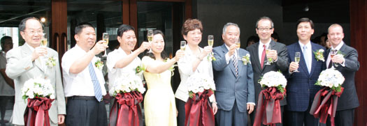 正式開幕剪綵,(左4起)花蓮縣長夫人徐榛蔚、交通部觀光局長賴瑟珍、台灣中國旅行社董事長周慶雄、集團董事長潘思亮。右1為太魯閣晶英酒店總經理柯麥克。
