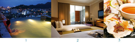 此外,在住房大樓的12樓規劃有裸湯區,除了有室內溫泉池外,並在屋頂南北兩端設置景觀露天湯池,男女分浴各自一邊,任一邊皆有面海的溫泉池與面山的的冷泉池,泉池邊緣採無遮蔽設計,泡進面海的池中,白天欣賞海港與太平洋的風光,晚上則坐擁萬家燈火的景致,而且燈光僅設計在水面下,營造出沈靜放鬆的氣氛。要提醒的是,享受露天湯池需另計費用,每人330元,目前平日僅開放夜間,自傍晚5點開始,而假日則從上午9點,最晚到夜晚11點,另外,飯店貼心備有可下水的浴衣,以供需要的客人穿著泡湯。