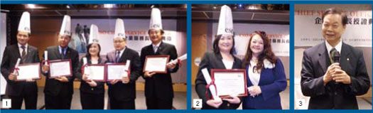 1.(左起)福容大飯店專案開發部經理鄭孟超╱林口店駐店副總韓承軒╱總管理處總監龎妤家╱總經理室經理楊正弘╱三鶯店駐店副總杜昱吉。2.福容大飯店總管理處總監龎妤家(左)與紐約國際管理顧問股份有限公司總經理陳文敏。3.長榮空運倉儲公司董事長闕建仁獲邀擔任授證Party當天的CEO級嘉賓。