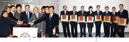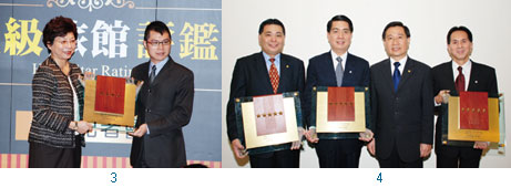 1.交通部部長毛治國(右5)、交通部觀光局局長賴瑟珍(右6)親自到場頒證。2.(左起)台北喜