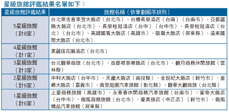 觀光局表示,從一星到五星之間,每個星級都有不同意涵,清潔、衛生都是必要的條件,一星級旅館提供旅客基本服務及住宿設施;二星級旅館除提供旅客必要服務,進一步提供舒適的住宿設施;三星級旅館提供旅客充分的服務及舒適的住宿設施;四星級旅館提供旅客完善的服務與舒適、精緻的住宿設施;五星級旅館提供旅客盡善盡美的服務與高品質及豪華的住宿設施。只要取得星級旅館標章,對消費者就有最基本的住宿保障。星級不同,代表的是硬體配備不同、服務的對象不同,消費者可依自己的需求,選擇適合自己的旅館住宿。
