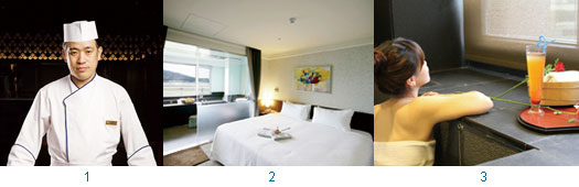 泡湯後想要食補?福容淡水溫泉會館位於2樓的日本創意料理餐廳「順園」,映入眼簾的是日式和風設計,與充滿渡假風情的峇里島庭園景觀,用餐空間舒適,料理細緻有品味,提供精緻輕食,符合時下美食的自然養生概念。位於2F的田園咖啡廳,則陳設黑色流蘇簾布,透著流洩日光,格外輕盈宜人。福容淡水溫泉會館順園餐廳主廚陳慶豐認為,做菜是一門藝術,他本人熱愛料理,也鍾愛藝術,透過仿山水畫精緻擺盤技巧,將美食華麗地呈現在顧客眼前。此外,福容淡水溫泉會館也可為客人量身訂做餐食,依預算、人數等設計。