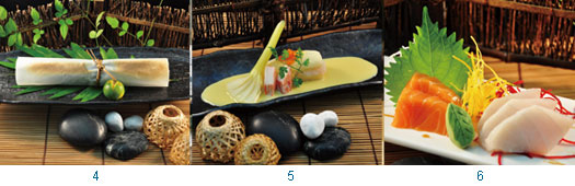 6.溫泉養生餐的和風山水刺身,嚴選鮪魚、鮭魚等季節性新鮮海魚,以山水畫般視覺擺盤。
