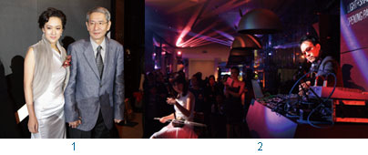1.寒舍集團創辦人蔡辰洋(右)賢伉儷。2.台北寒舍艾美酒店在開幕派對上,邀請到包括時尚DJ劉軒、享譽國際的何曉枚舞團等藝術團體,巧妙展現融合東方與西方、古典與狂放、聽覺與視覺等衝突藝術的美感。