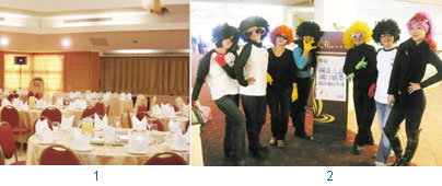 1.天籟溫泉會館擁有不同包廂提供各公司團體不同需求。 2.保險公司於天籟會館舉辦尾牙餘興表演活動。
