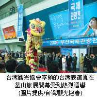 據觀光局統計,2006年1∼7月來台旅客超過200萬人次,較去年同期成長4.92%主要客源市場前四名分別為日本、港澳、美國及韓國。由於韓國這幾年旅台人次大幅成長,為加強推廣韓國觀光市場,達成2006年韓國來台旅客達21萬人次的預定目標,台灣觀光協會與觀光局除首次正式邀請對韓國市場有興趣的業者組團一行36人前往釜山參展外,為迎接韓國10月初長達一週以上的中秋節長假,觀光局提出相當漂亮的獎助措施,也就是針對可經營國際包機業務之旅行社招攬旅客,從尚未有定期航班或定期包機的機場來台旅遊者,飛抵桃園、高雄小港兩國際機場,每架次獎助韓幣4百萬元,飛抵其他機場,每架次獎助韓幣5百萬元,在此優惠的措施下,觀光局韓國辦事處表示今年10月初預估將有十幾架次韓國包機來台旅遊。(撰文>劉曉甄)|
