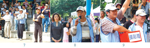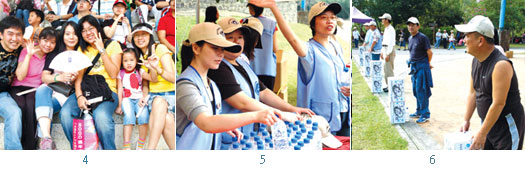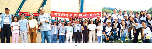 1.由台北市旅行商業同業公會理事長姚大光(左1)與澳門航空台灣區總經理史經春(左3)頒贈機票獎項。 2.本屆「健康活力美」登山活動圓滿成功。 3.東南旅行社同業行銷部協理王士豪(最後排中舉勝利手勢者)帶領團隊前來參與。 4.新瑞旅行社總經理王正志(左1)與公司職員。 5.公會工作人員在現場發送紀念品與水。 6. 公會要員也在現場擔任遊戲關主。 7.公會高層大跳「健康操」。 8.台北市旅行商業同業公會理事長姚大光(持麥克風者)期盼來年登山活動能更盛大舉辦。 9.台北市旅行商業同業公會理事任培義抽獎實況。