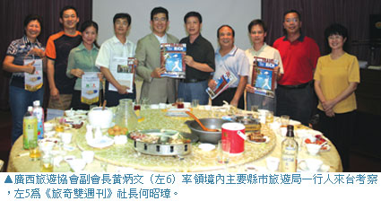 為增進甲聯會會員與廣西省旅遊局互動,趕在廣西省旅遊局結束訪台行程之前,甲聯會會長吳志浤特別安排廣西省旅遊局9位來賓與甲聯會會員會面,吳志浤表示希望藉此增進雙方互動與交流,將廣西旅遊自桂林、南寧延伸至其他如北海、玉林、柳州等地方。