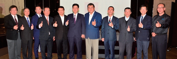 ▲(左起)中華兩岸旅行協會監事主席田書治、中華餐旅經理人協會理事長楊明惠、甲聯會會長黃文卿、觀光產業理事長交流協會理事長蘇乾亮、旅行業品質保障協會理事長許晉睿、中華兩岸旅遊產學發展協會理事長白中仁、台灣海峽兩岸旅行發展協會理事長姚大光。(右3起)台灣國際觀光救援服務協會理事長許高慶、觀光導遊協會理事長莫國強、旅行公會總會副秘書長周志慶。
