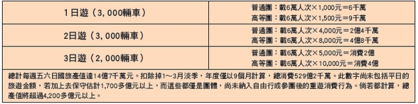 台灣旅行業國民旅遊發展協會理事長朱永達表示,舉凡企業、鄰里、學生等團體,均在出發日起2~3個月作規劃,補助方案未確定根本無法作正確的安排,到底所去的縣市、入住的飯店規範,加上補助如何申請,又要保證申請後各縣市是否會撥款下來,都影響到行程的安排。由於不定的因素太多,旅行社無法給客人保證一定請的到款,倘若各縣市因申請案件太多,補助金額有限導致無法撥款,發生此問題又該如何解決?