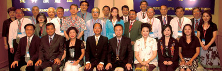 ▲群英會會長正安旅行社總裁紀正德與講師連國焰(前排左5、左4)與參加會員合影。