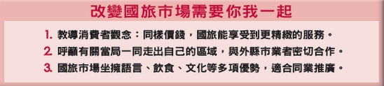 朱永達對於台灣國民旅遊市場發展極具信心,強調值得各位同業們來共同推廣,不管是語言通、飲食方面、文化保存及介紹,都相較於耕耘其它市場來得更有優勢。