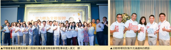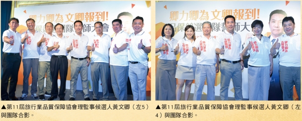 第11屆旅行業品質保障協會理監事候選人黃文卿表示,對於此次選舉,團隊將秉持口號:「沒有對立,只有為大家做更多的」的原則,竭誠為產業付出,因為旅遊業是個脆弱的行業,如果不團結,就看不到未來。今年經歷了航空公司罷工、停飛的事件,但因為法令的不完備,讓這些事件的影響都轉嫁到弱勢的旅遊業者身上,這些痛黃文卿都了解。