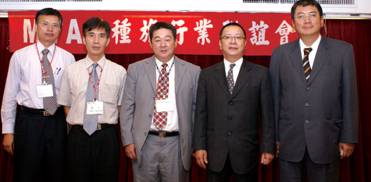 ▲(左起)交通部觀光局業務組專員高暐翔、科長江志端、甲聯會會長吳志浤、全聯會理事長曾盛海、北市公會理事長姚大光。