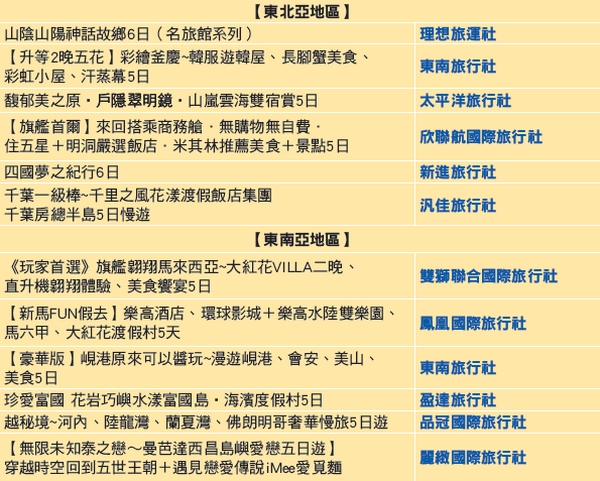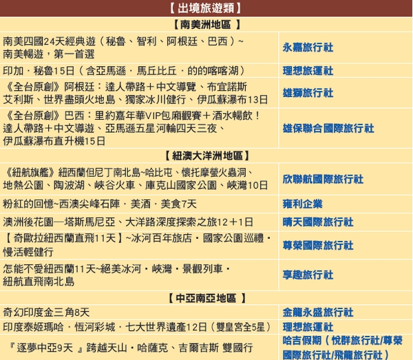 2 0 1 9 金質旅遊行程選拔入圍行程名單