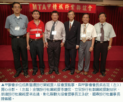 甲聯會於10/25舉行的10月例會洋溢歡欣氣氛,包括秘書長吳佳怡以及上屆會長吳志仁等多位會員分別當選第7屆品保協會以及旅行業經理人協會的理監事,會長吳志浤肯定地表示,為同業發出正義之聲的甲聯會已獲得認同,希望當選人能秉持用心為旅行業界爭取福利權益。甲聯會每月例會皆安排課程,10月是由副會長李謙宏講述如何善用網路與新型態的技術來節省旅行社在通訊上的花費。他除了暢談電信整合通訊趨勢、固網與行動電話整合效益、MVPN、WiMAX、新客服時代—WebCall等議題,並對於出差國外洽公時昂貴的漫遊費,提出「原號轉接」、「全球隨身碼」以及u網路電話VOIP」等不同的節費建議,同時Step By Step指導具體做法,先從整理公司全年電話費帳單以及分類輸入Excel檔開始,與會者無不專心聽講並熱烈討論,努力尋求在微利時代降低成本的好方法。