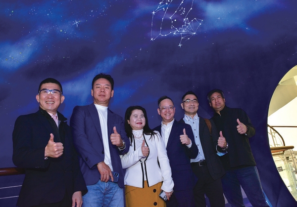▲(左起)金格食品公司總經理林世閎、祥儀企業董事長蔡逢春、觀光工廠促進協會理事長許立昇、桃園市政府觀光旅遊局局長楊勝評、桃園市政府經濟發展局局長郭裕信、桃園觀光工廠促進發展協會理事長溫錦儀、手信坊總經理陳世洋、台灣旅行業國民旅遊發展協會榮譽理事長朱永達、台灣入境旅遊協會理事長王全玉。