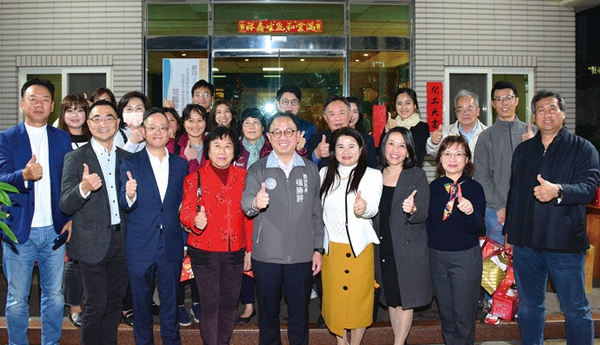 ▲金格食品公司總經理林世閎(左3)、特別助理吳為傑(右1)與踩線團合影。